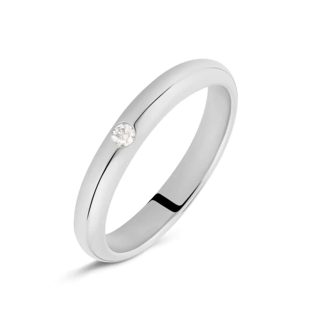Un tocco moderno per una fede, con un piccolo diamante incastonato.